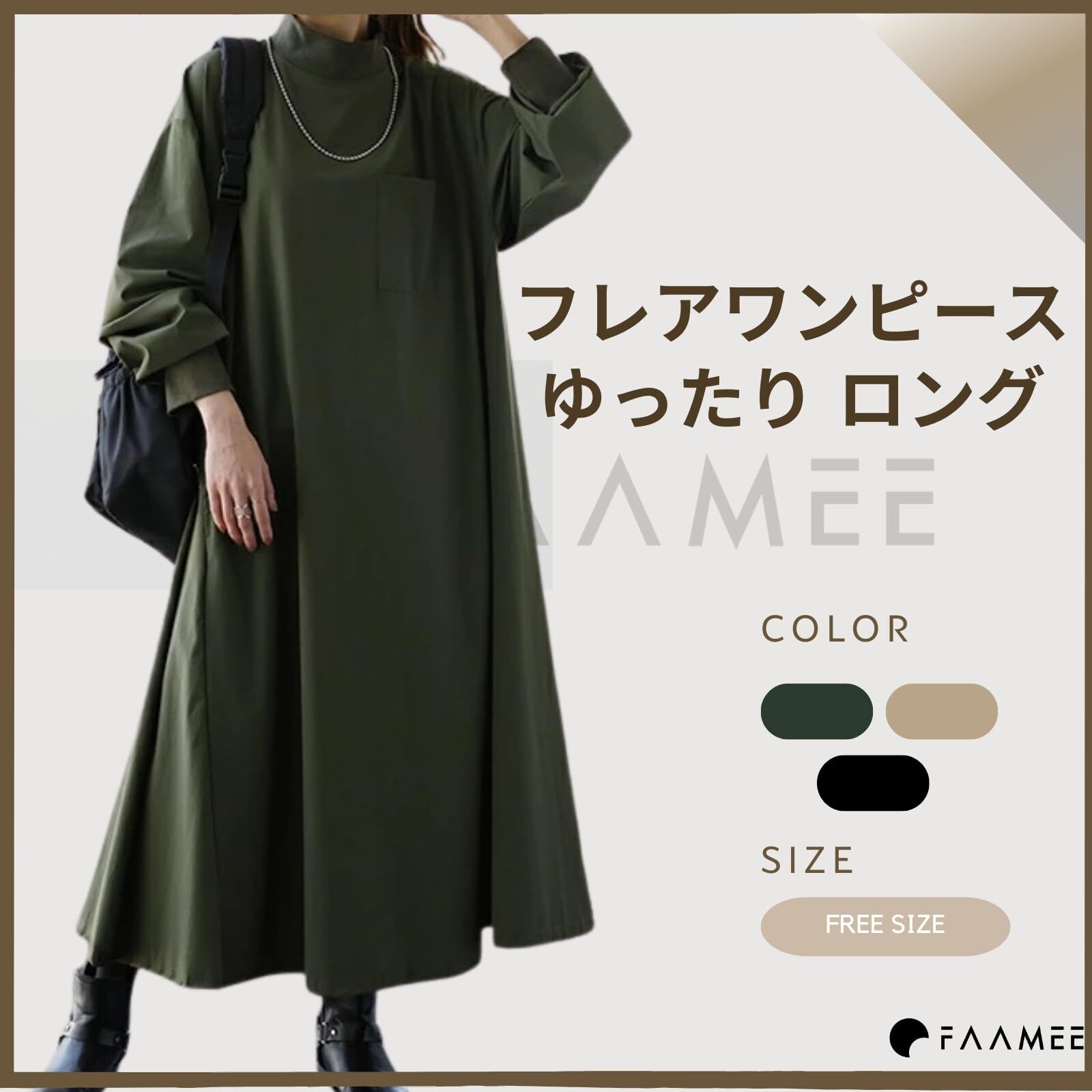 [フェイミー] ゆったり フレアワンピース レディース ロング カジュアル フリーサイズ