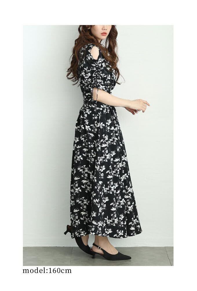 [sawa á la mode] レトロ で 可愛い 花 が 舞う 肩あきリ ボン スリーブ カシュクール ワンピース レディース ファッション ワンピース 大人可愛い