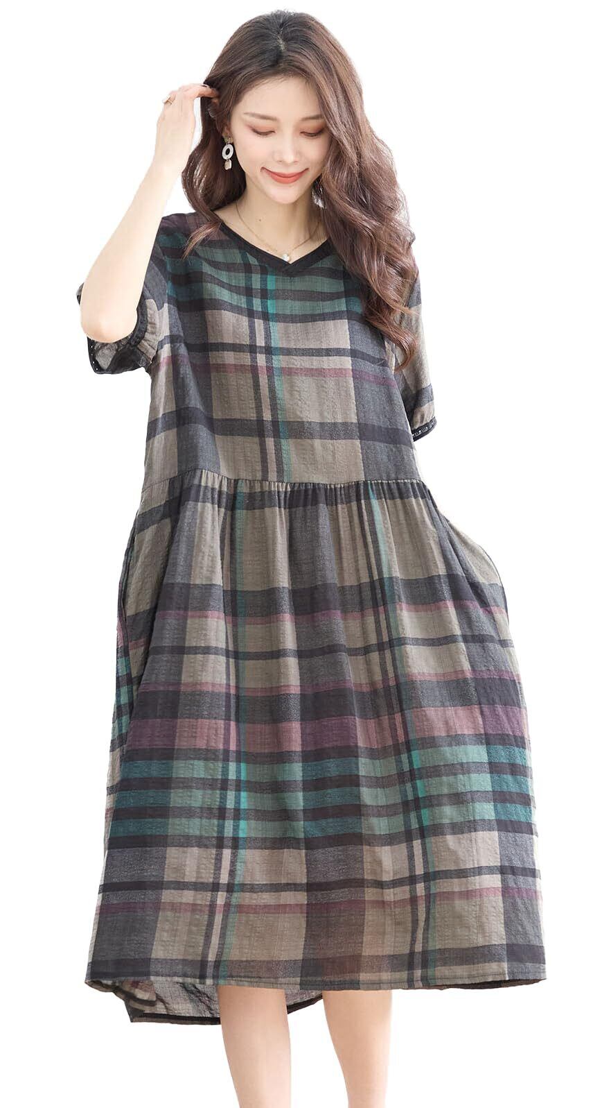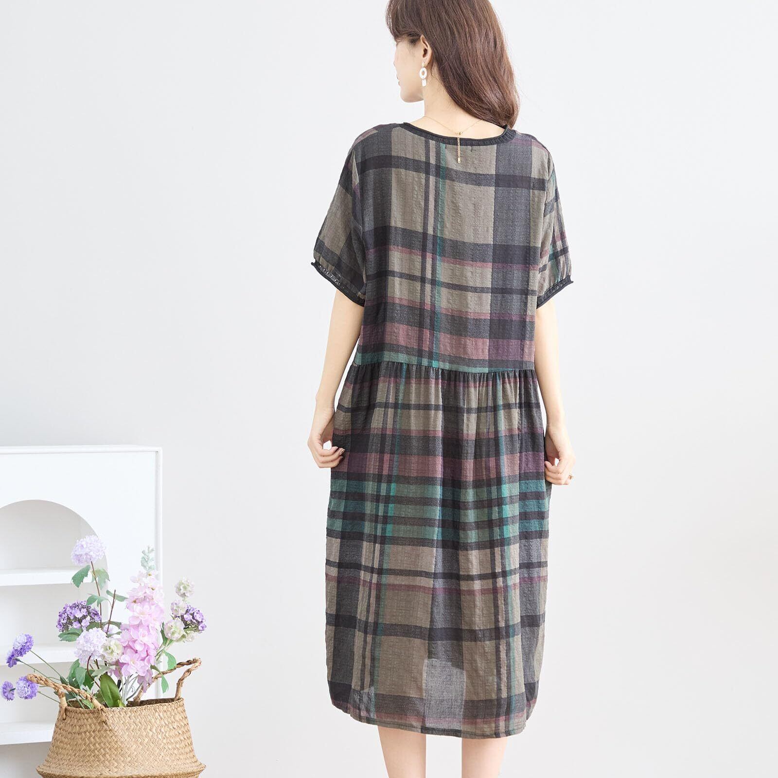 ◆素材◆ 綿100% ◆サイズ◆ フリーサイズ ◆実寸◆ バスト106cm前後(身幅53cm幅) 着丈:108cm 肩幅:40cm 身幅:53cm 裾幅:75cm 袖丈 : 23cm ◆サイズについて◆ サイズ表示は平置きの状態で採寸しております 実寸をご参考にご購入をお願い致します ◆カラー◆ チェックグリーン柄