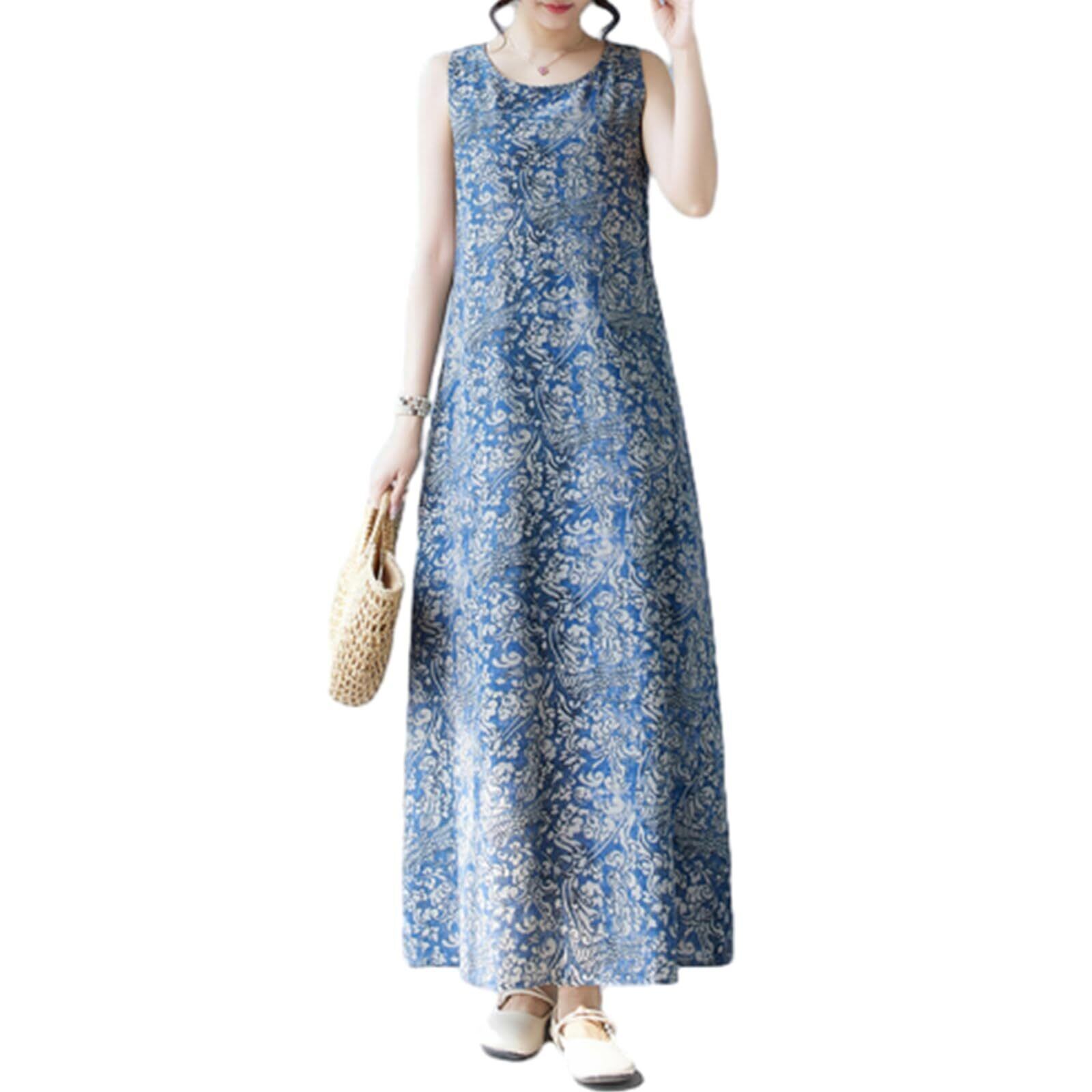 【数量限定】[JoccKorr] チョッキ ワンピース レディース ロングワンピース 綿麻 シャツ ワンピース 半袖 ドレス 丸襟 ノースリーブ ワンピース 大きいサイズ ゆったり カジュアル ファッション ポケット付き きれいめ マキシ丈 体型カバー 通勤 春夏 | BOSSO