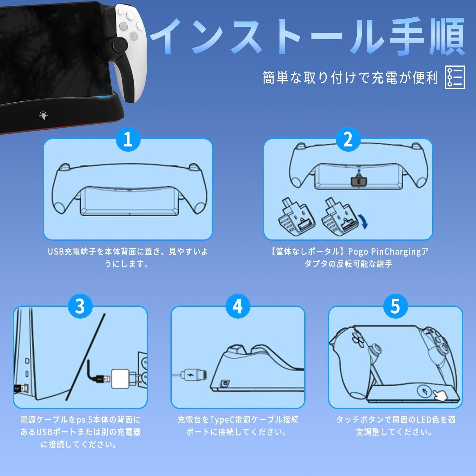 【新春セール】PS Portal 用充電スタンド【新登場-ケース付き充電】Lwuckbarrt PS5 Portal リモートプレーヤー 用 充電ドック psポータブル 充電スタンド Type-C式 急速充電、ケース付き充電可能 ケースの取り外し不要、置くだけ充電可能 RGB ライト LED 指示ランプ付 3重安全充電保護 PSポータブルリモートプレーヤ 充電器 過充電保護 取付簡単 省スペース (ブラック) | BOSSO