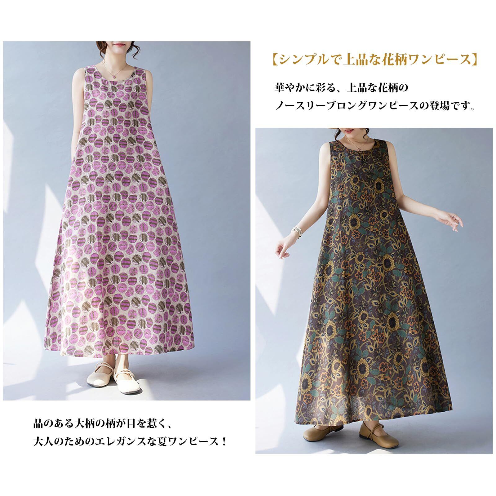 【2022最新】[CoeFodMavo] ワンピース レディース ノースリーブ ロングワンピース 丸首 花柄 綿麻 体型カバー 大人 上品 オーバーサイズ ゆったり 着痩せ オフィス カジュアル おしゃれ 可愛ら 普段着 通勤 リゾート 春 夏 | BOSSO