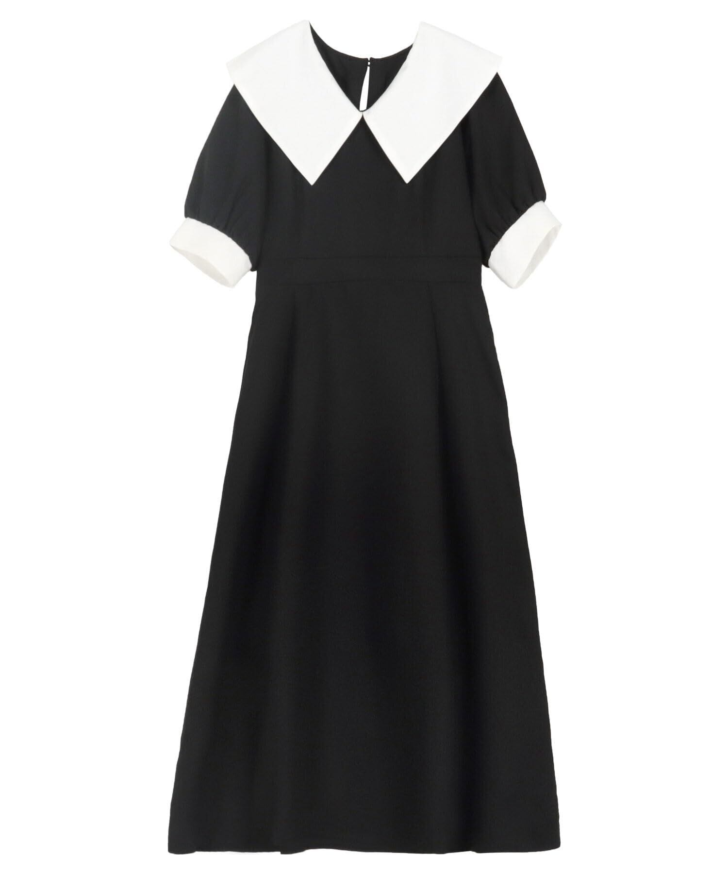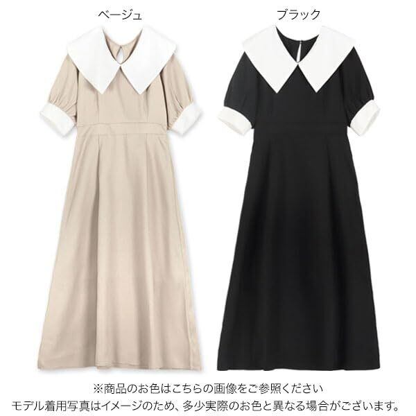 クラシカルな雰囲気ただようビッグカラーワンピース。バイカラーの配色デザインがアクセントになり顔まわりをパッと華やかせてくれる一枚。動くたびになびくドレープが美しくエレガントさを演出してくれる大人のフレアワンピースです。