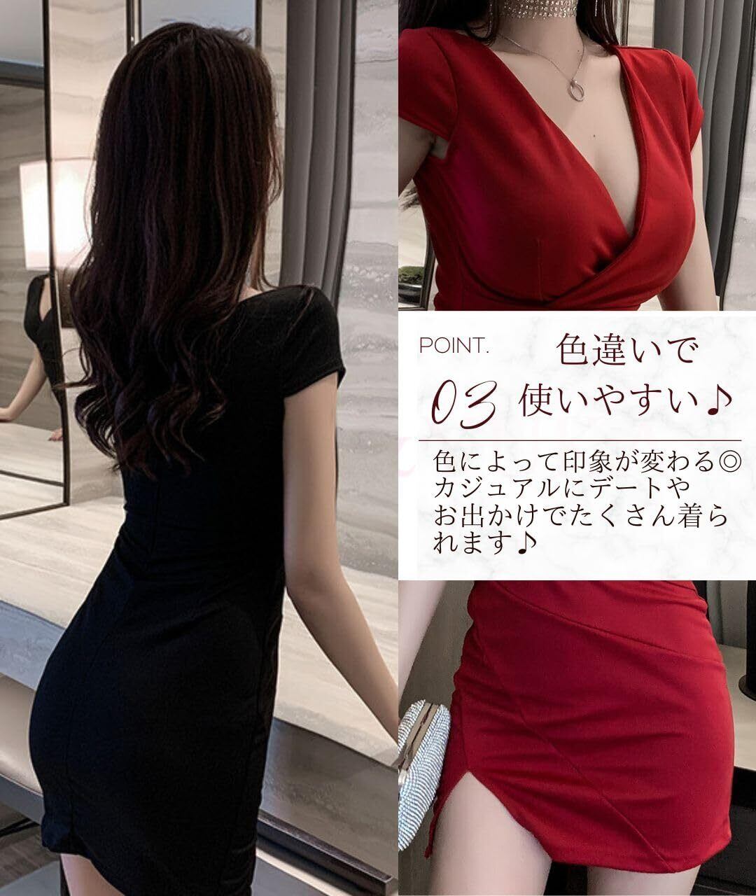 [ココアンドユカ] カシュクール タイト セクシー ワンピース 半袖 ミニ キャバ ドレス パット 付き スカート スリット ワンピ ノースリーブ レディース