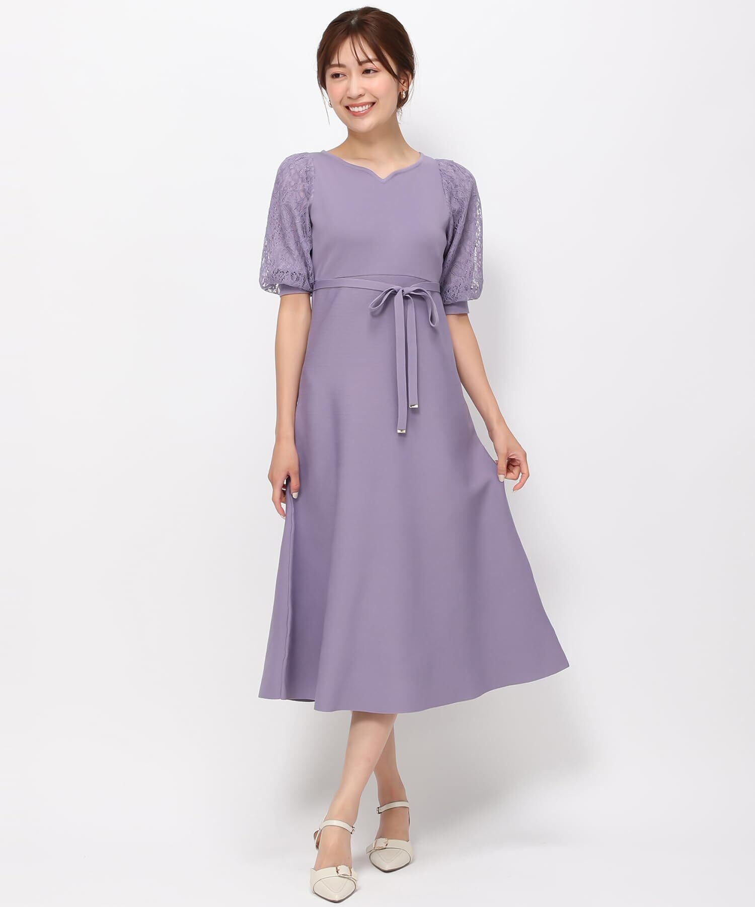 スリーブのレース使いが女性らしさを引き立たせるワンピース