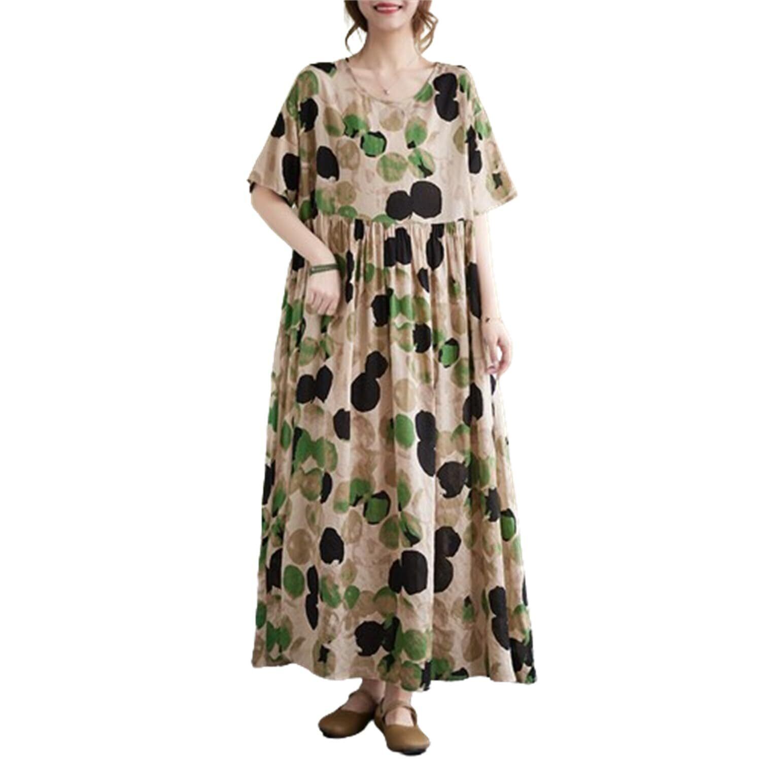 [kisetsumate] リゾートワンピース ワンピース レディース 夏 綿麻 森ガール リネンワンピース ロングワンピース 大きいサイズ ゆったり ボヘミア風 花柄ワンピース 砂浜 旅行 カジュアル 体型カバー きれいめ 人気