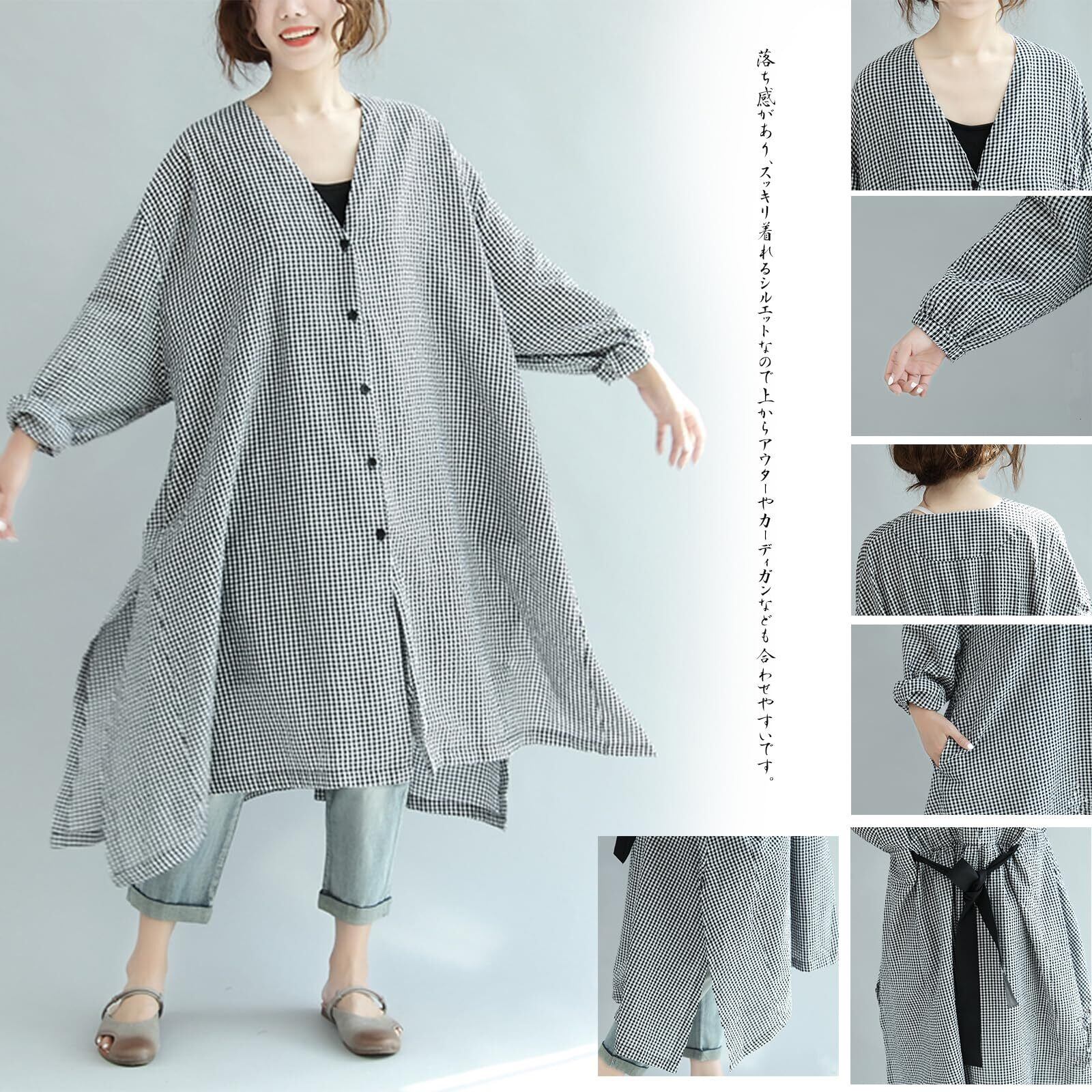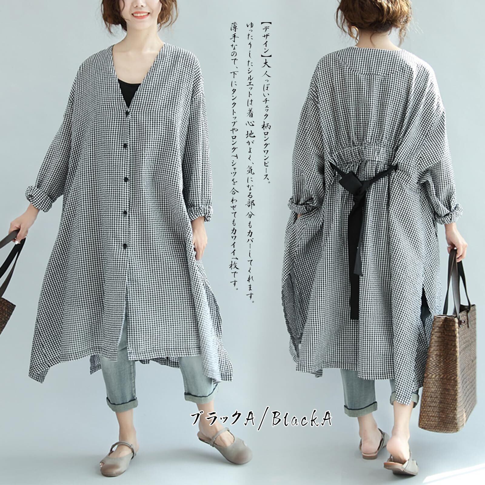 【在庫処分】[RoyzTocz] ワンピース レディース ロングシャツ カーディガン シャツ ワンピース チェック柄 ドレス Aライン 長袖 半袖 Vネック 立ち襟 きれいめ カジュアル ファッション ロングワンピース おしゃれ 体型カバー 着痩せ 普段着 通勤 春夏秋 | BOSSO