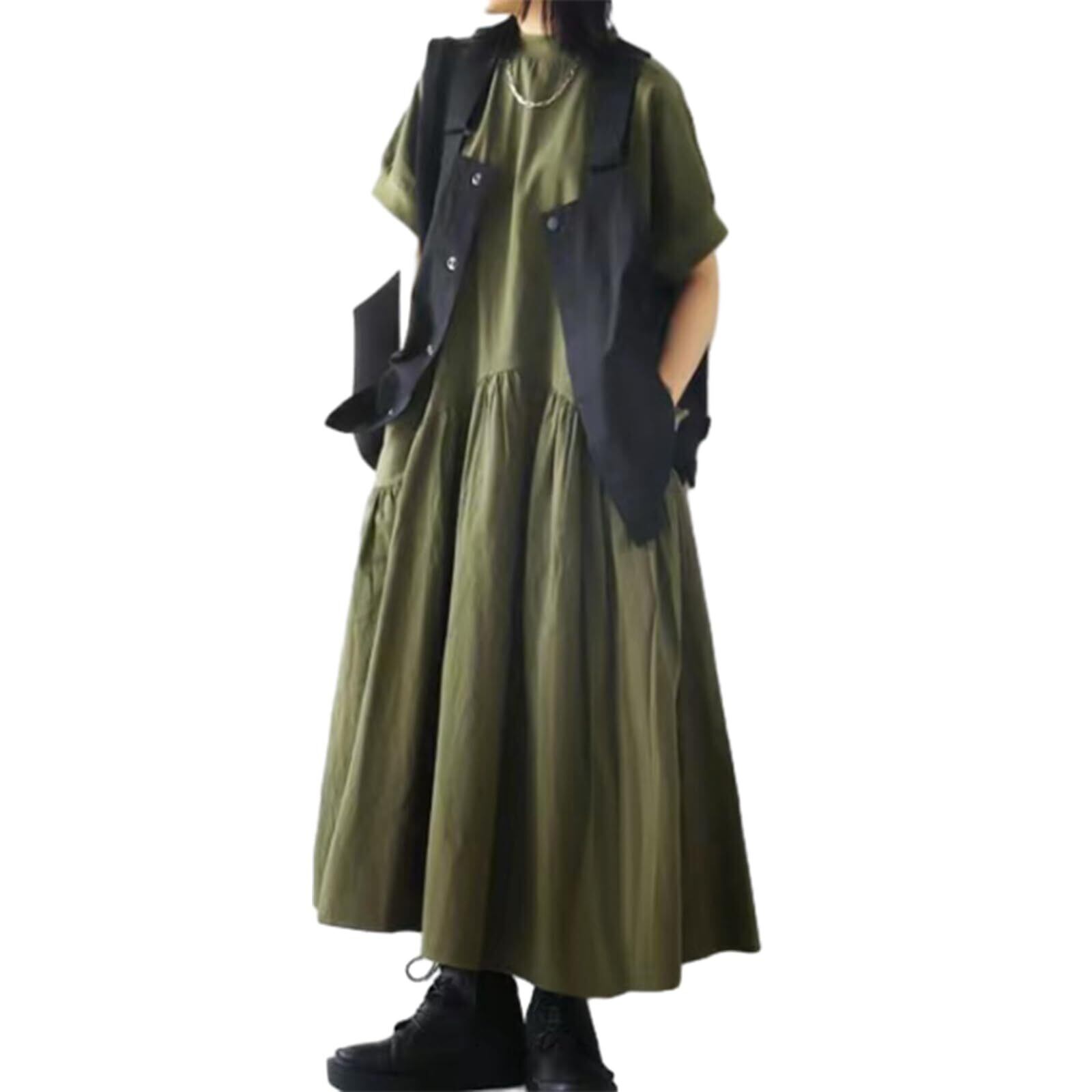 [ORWZDCO] ワンピース レディース 半袖 ロングワンピース ハーフハイネック ポケット付き フリル 切り替え 体型カバー 着痩せ 無地 シンプル おしゃれ きれいめ エレガント 普段着 通勤 デート 春 夏 秋