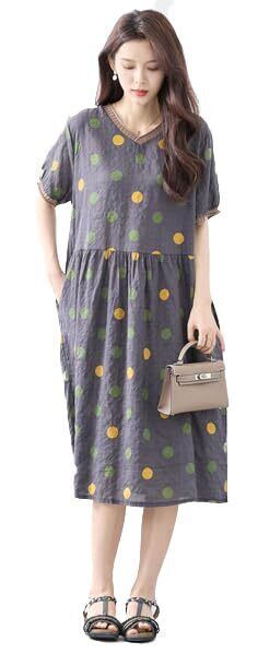 ◆素材◆ 綿100% ◆サイズ◆ フリーサイズ ◆実寸◆ バスト110cm前後(身幅55cm幅) 着丈:109cm 肩幅:39cm 袖丈:22cm 裾幅:78cm ◆サイズについて◆ サイズ表示は平置きの状態で採寸しております 実寸をご参考にご購入をお願い致します ◆カラー◆ カラフルドット