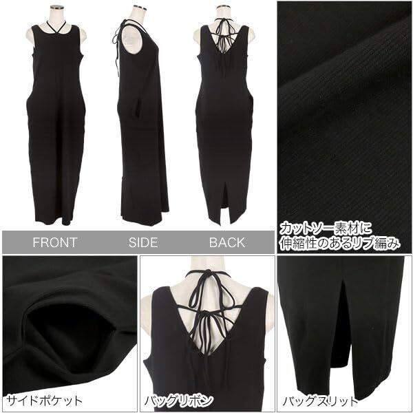 シンプルなのに大人レディーにキマるリブワンピース。顔周りをすっきりと見せるスクエアネックにホルターネックの華奢なストラップが女性らしさを引き立て、色っぽさとヘルシーさのある表情に。大きく開いた背中デザインにトレンドのリボンが映えるバックショットもオシャレな一着です。