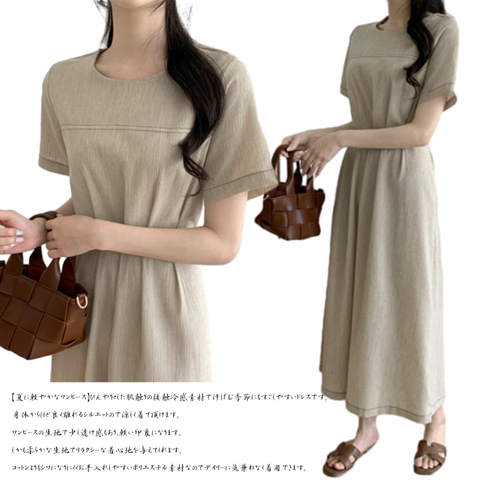[CCGGOWMM] レディース ロングワンピース ドレス チュニック シャツ ワンピース 丸襟 無地 薄手 半袖 きれいめ マキシ丈 カジュアル ファッション 体型カバー 着痩せ 普段着 通勤 春夏