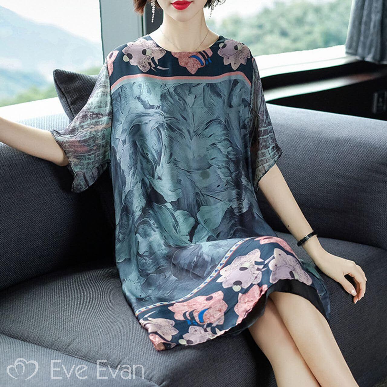 [イヴ エヴァン] 【在庫限り】シルク調 上品 さらさらワンピース 体型カバー 大きいサイズ M〜3XL レディース EE23