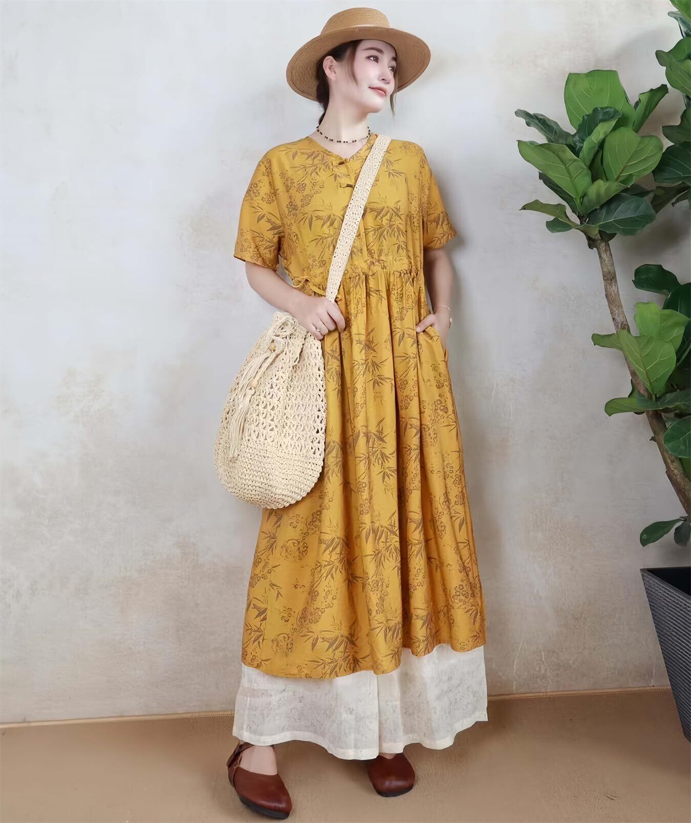 【特価商品】[OWIEOW]ロングワンピース レディース 花柄ワンピース 半袖 春夏 Vカラーリ 森ガール ゾートワンピース 綿麻 体型カバー きれいめ 涼しい 人気 大きいサイズ ゆったり 旅行 カジュアル | BOSSO