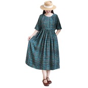 【2022最新】[JIAONASHIJIA] 普段着 花柄 レディース 綿麻 ひざ丈 フラワー カジュアル ゆったり エレガント フリーサイズドレス クルーネック 体型カバー 半袖 ワンピース 夏 可愛い 大きいサイズ 柔らかい | BOSSO