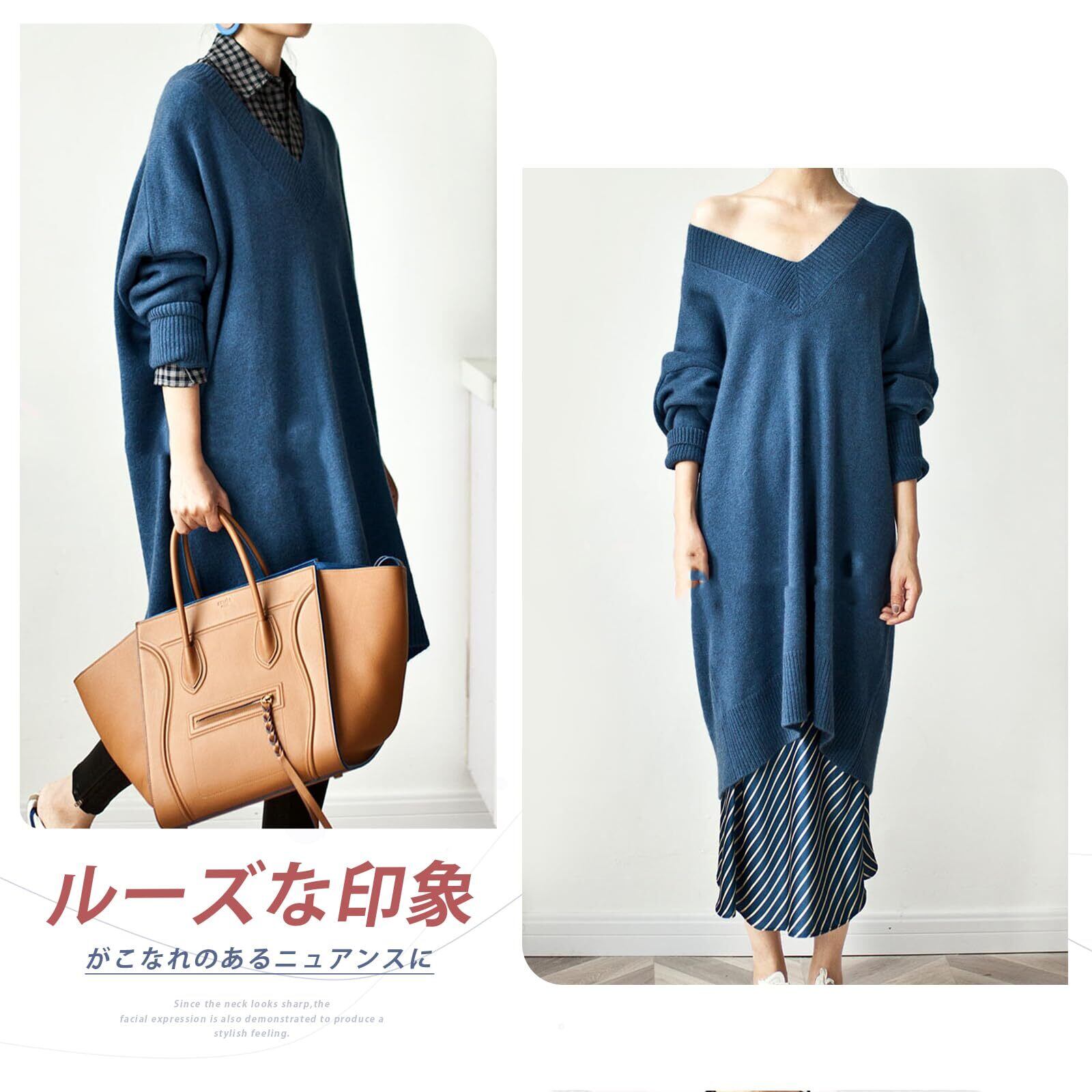 【2022最新】[Vmiutyer LLOP] ニットセーター レディース ワンピース vネック ロング丈 長袖 大きい ゆったり カジュアル トップス オーバーサイズ ビッグシルエット おしゃれ 体型カバー 秋 冬 | BOSSO