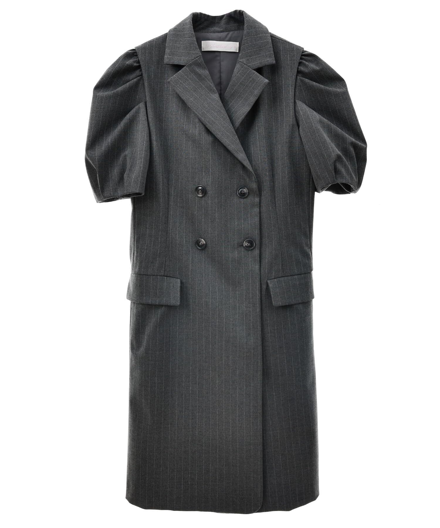 ジャケットディテールを取り入れたトレンドライクなミニワンピース。タックを施したパフスリーブや程よくシェイプしたウエストラインがマニッシュなデザインの中にも女性らしさを際立たせてくれます。袖は取り外し可能なため、ジャンスカやジレとしての着こなしも可能。シアートップスやブラウスとのレイヤードコーデも楽しんでいただけるロングシーズン大活躍な1枚となっております。