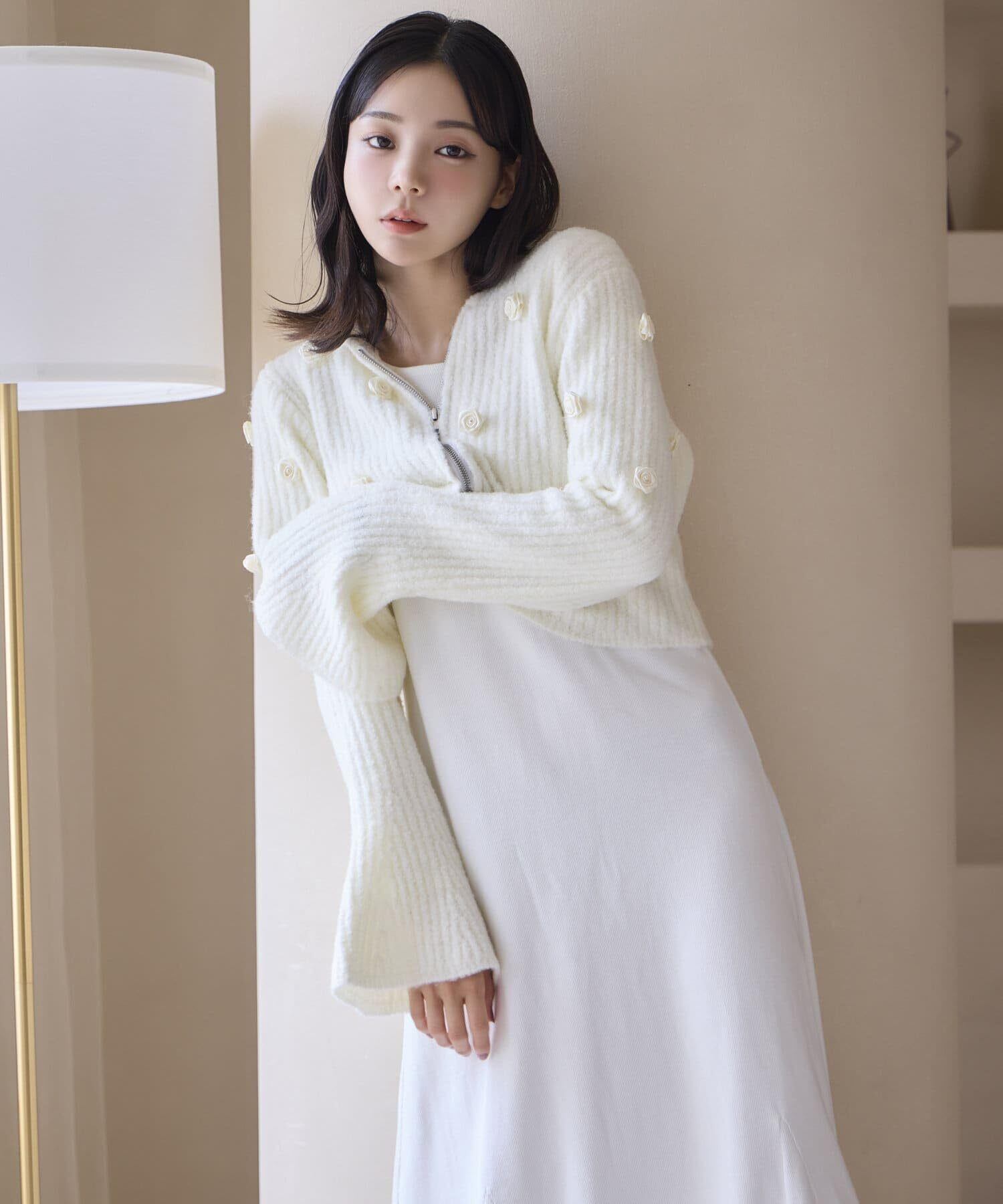オススメスタイリング 1枚で着るのはもちろん、同色でお作りしているカーディガン(品番:0142050250)と セットで着るのもオススメです。 足元はキレイめスタイルならショートブーツやロングブーツ、 カジュアルに着るならスニーカー合わせがオススメです。
