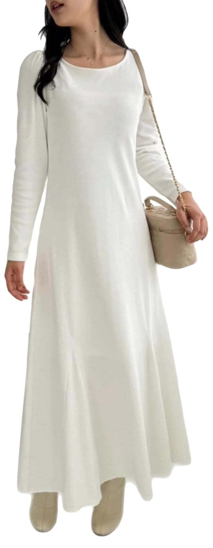 伸びの良いテレコ素材で大人フェミニンな印象になるロングワンピース 見た目よりもゆったりとしたシルエットです。 体型を拾わずゆとりのある着心地に仕上げました◎ 後ろのレースアップを締め上げると身体にフィットし、 きれいなラインを見せることもできます◎ 右袖にはNICE CLAUPのロゴが入っているのもポイント。