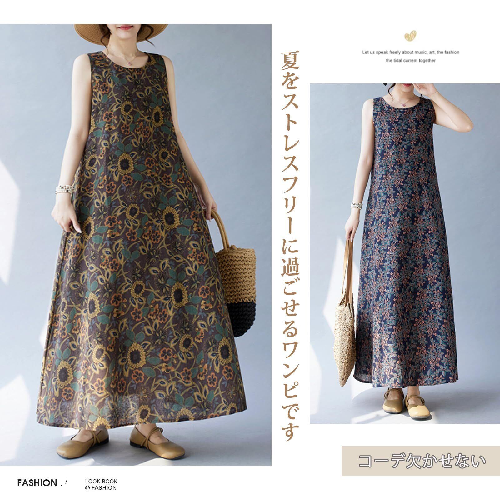 【2022最新】[ORWZDCO] レディース ワンピース ノースリーブワンピース ロングワンピース 丸首 花柄 綿麻 ポケット付き シンプル ゆったり 着痩せ 体型カバー オフィス カジュアル おしゃれ 甘さ 普段着 通勤 エレガント お出掛け 春 夏 | BOSSO