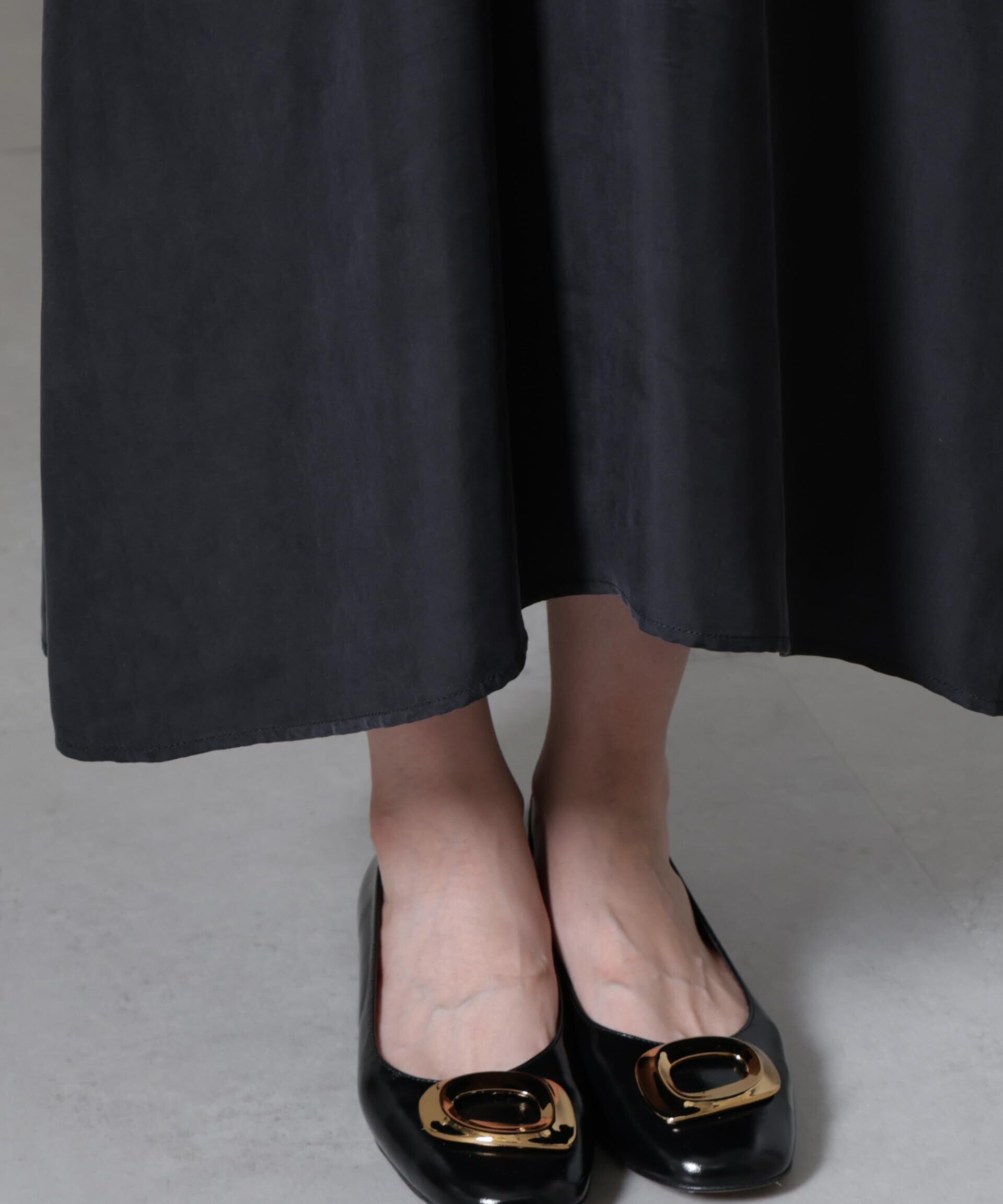 ・上品なバックドレープギャザーデザインのフレアシルエット