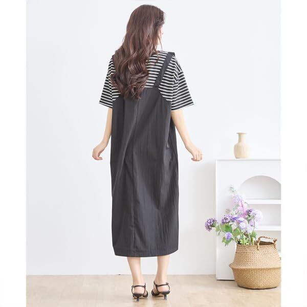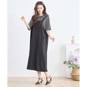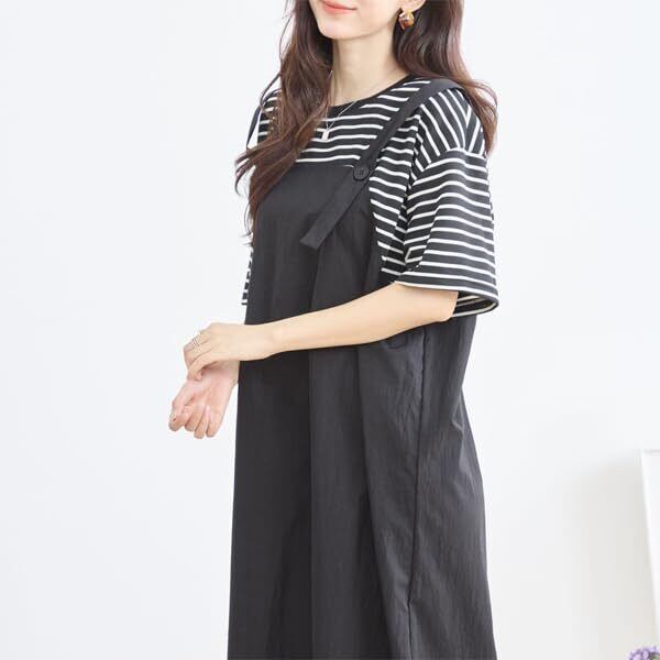 [pure&fine] ワンピース ボーダードッキング 切替 ジャンパースカート ゆったり 大きい 40代 体型カバーz3676