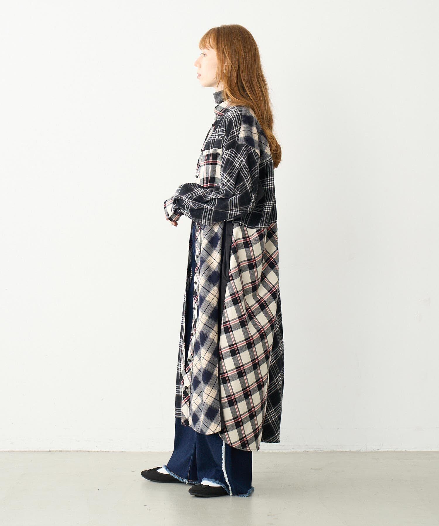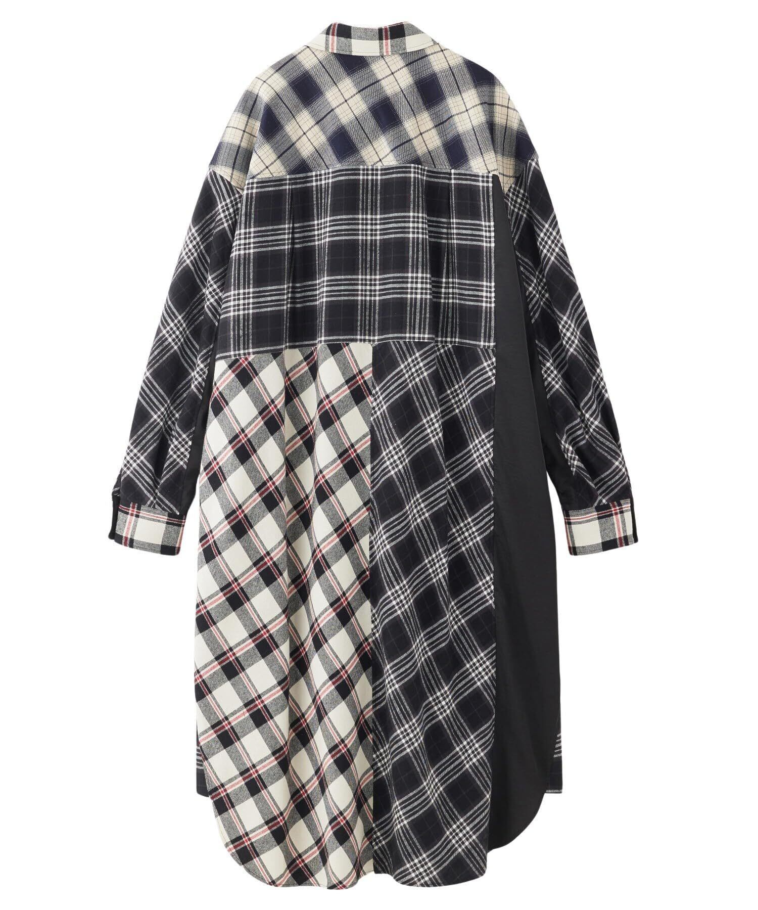 [ミルクフェド] カジュアルドレス PLAID PATCHWORK SHIRT DRESS レディース