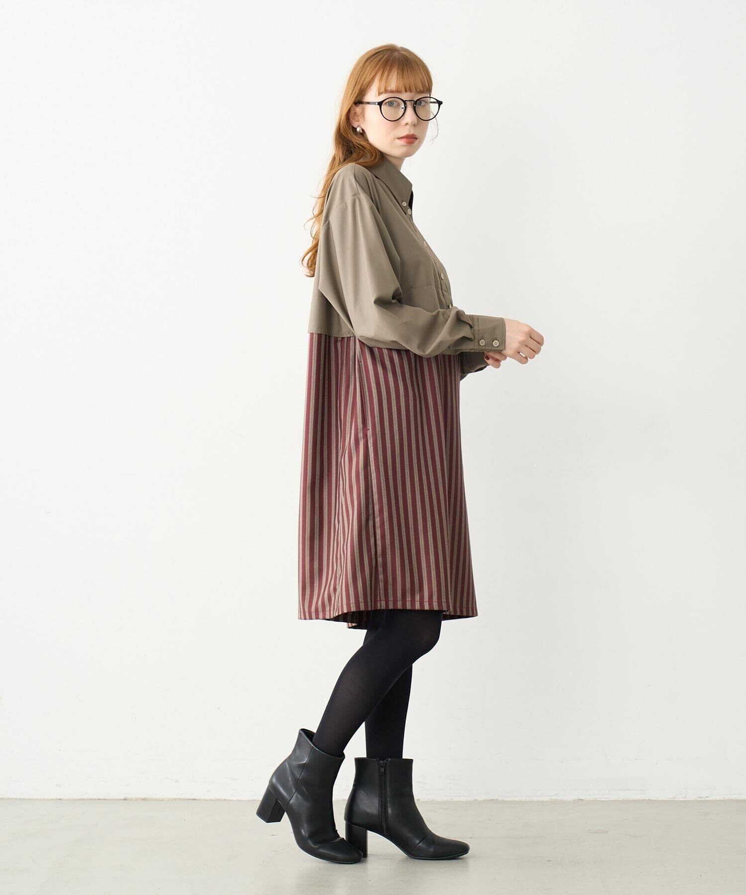 [ミルクフェド] カジュアルドレス COLOR BLOCK SHIRT DRESS レディース