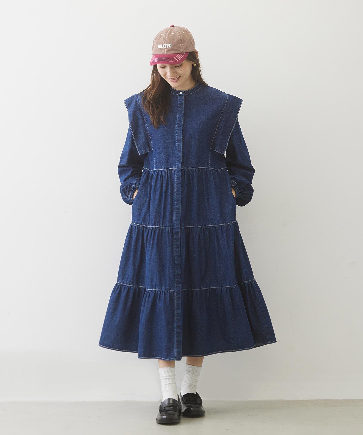 [ミルクフェド] カジュアルドレス DENIM TIERED DRESS レディース