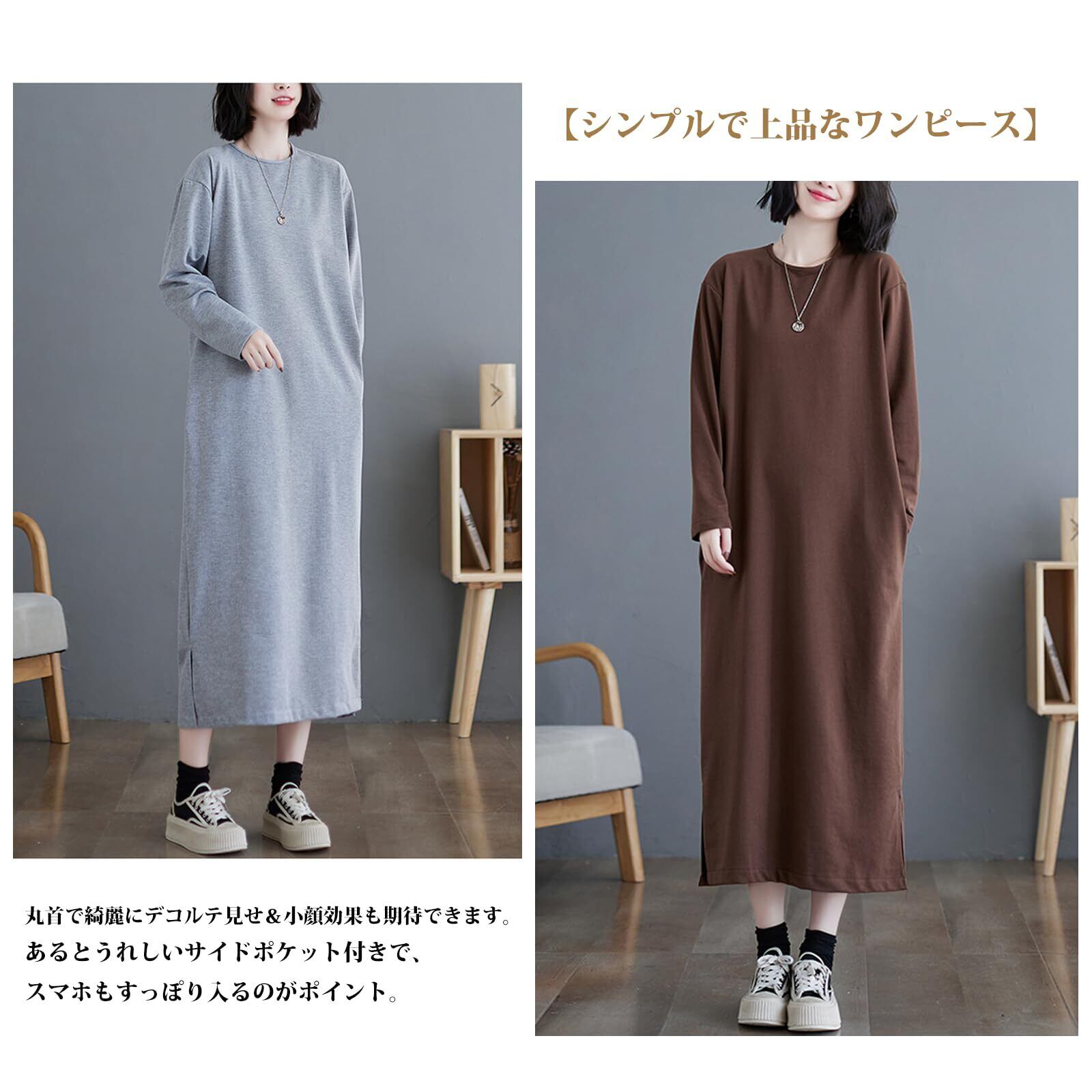 [CoeFodMavo] ワンピース レディース 長袖 ロングワンピース 丸首 スリット 体型カバー 大人 上品 可愛ら オーバーサイズ ゆったり 無地 着痩せ オフィス カジュアル おしゃれ 普段着 通勤 春 秋 冬