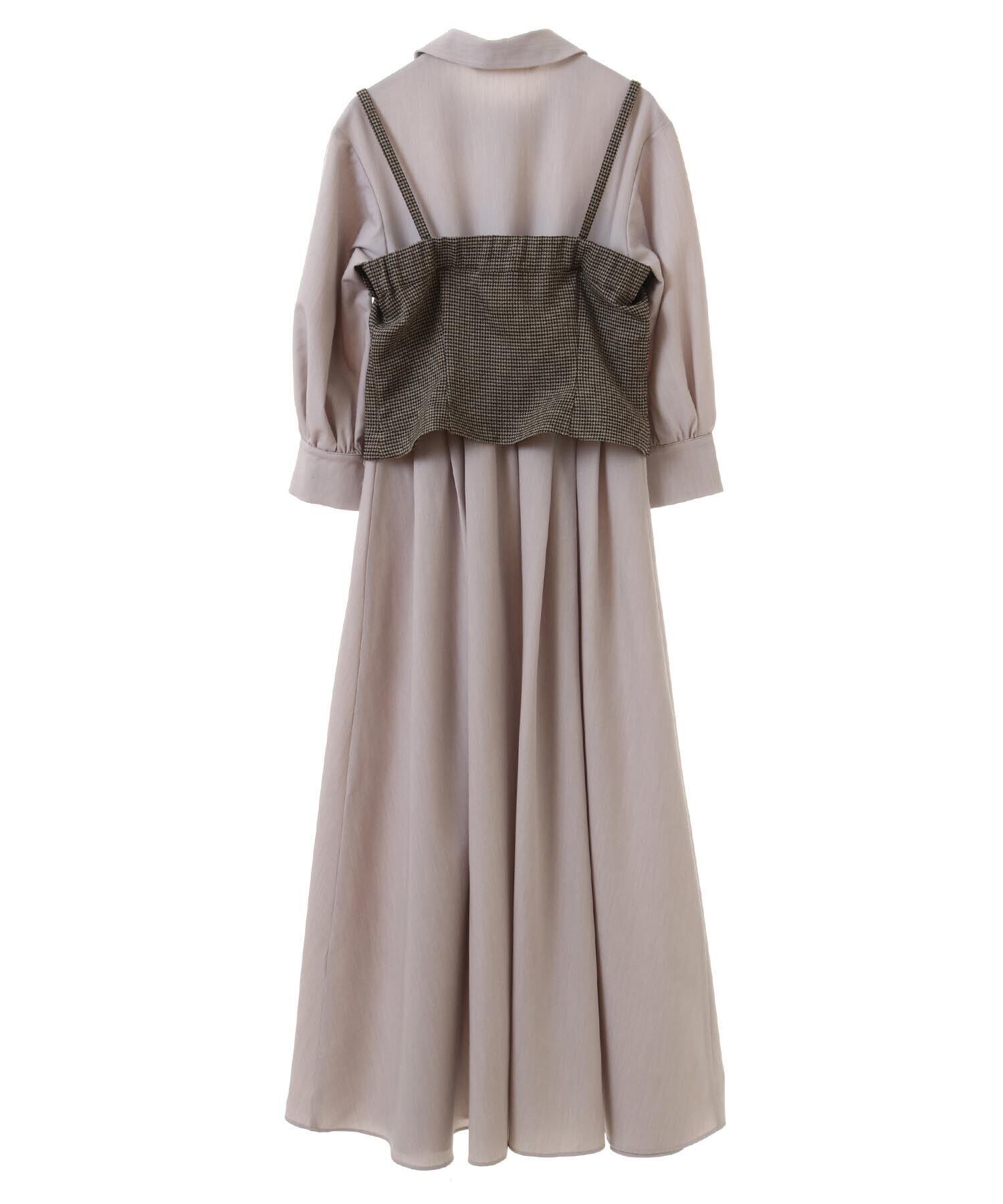 パフスリーブのシャツワンピースと別素材のビスチェがセットになったMANY WAYのレイヤードワンピース。厚地でしっかりした仕立てのビスチェはTシャツやシアーインナーなどにも合わせて単品でもお使い頂けます。ラベンダーの無地合繊素材、ドライタッチなベージュのチェック、デニム風合繊にそれぞれ合う配色ビスチェがセットになったお得なアイテム。