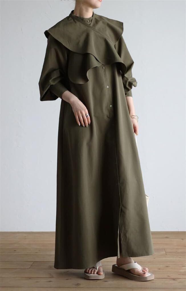 程良く厚さで通気性が良く、自然で快適な着心地が抜群です。Aライン 体型カバーのマキシ丈ワンピースで、落ち着いたデザインなので、多くのシーズンでも着まわし出来ます。