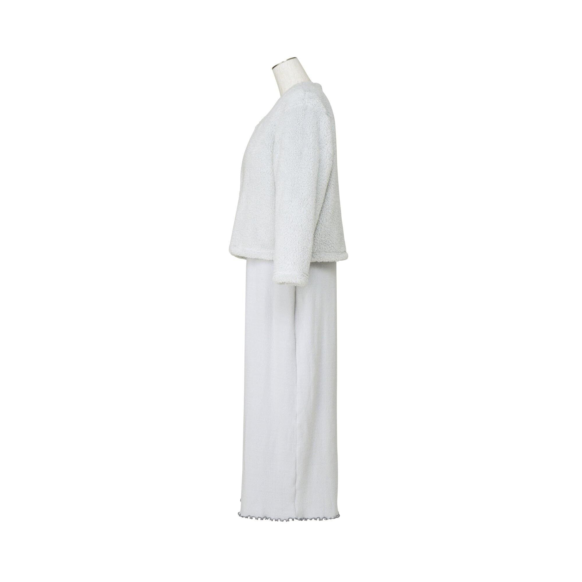 ワンピースにはヒアルロン酸加工を施しており、なめらかな肌触りでおうち時間を快適に過ごせます。