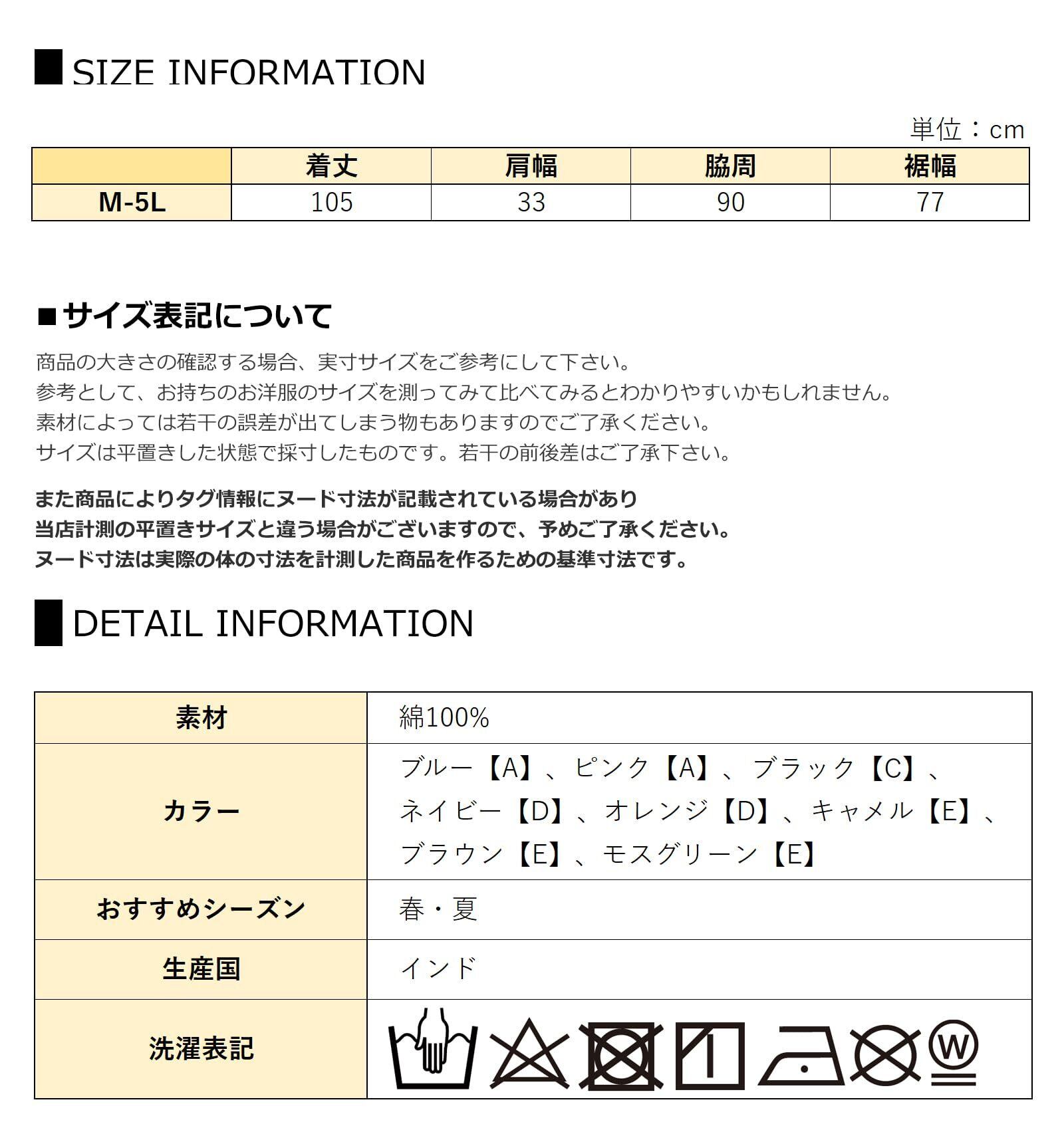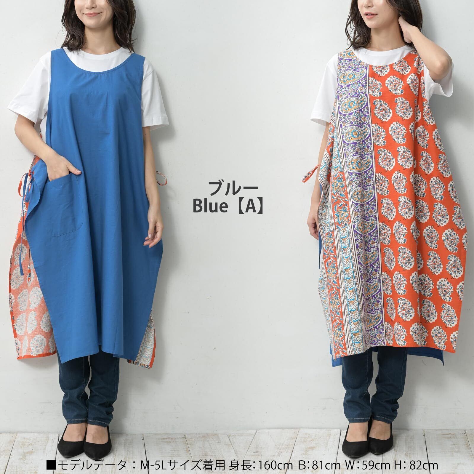重ね着を簡単に楽しめる無地×柄エプロンワンピース。上質な質感のインド綿100%生地。前後で着用できる2way仕様だからコーデの幅も広がるオシャレアイテムです。ワンピース フリーサイズ ノースリーブ 前後2way 春 夏 青 桃色 黒 紺 橙 緑 M L LL 3L 4L 5L 9号 11号 13号 15号 17号 19号 hb-ss-op2695