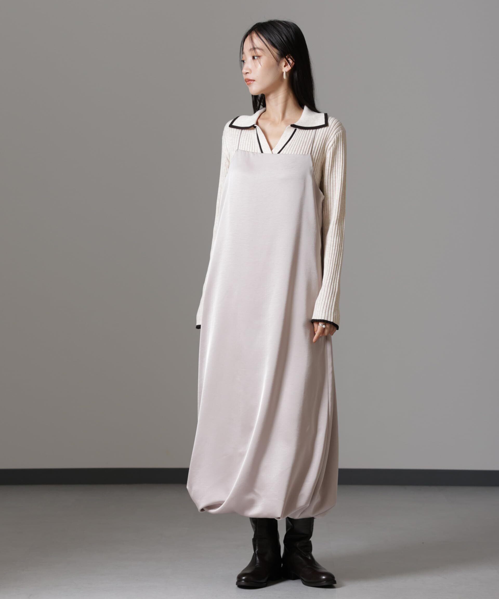 トレンドのバルーンシルエットを落とし込んだキャミワンピース。ジャケット合わせのキレイめスタイルから、Tシャツとのカジュアルスタイルまで、レイヤード次第でイメージが変化する一着です。
