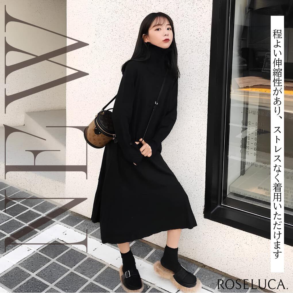 [ROSELUCA.] ワンピース レディース 長袖 【大人カジュアルな毎日】 タートルネック ニット 秋 冬 春 ミモレ丈 体型カバー
