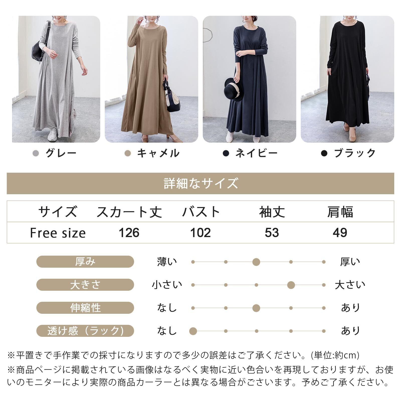 【数量限定】[TeMibery Lyric] ワンピース レディース ドレス ロング 着痩せ 長袖 ロングワンピース カジュアル aライン 可愛い きれいめ 大きいサイズ ゆったり 通勤 エレガント クルーネック マキシ丈 無地 ポケット付き 重ね着 春 秋 | BOSSO