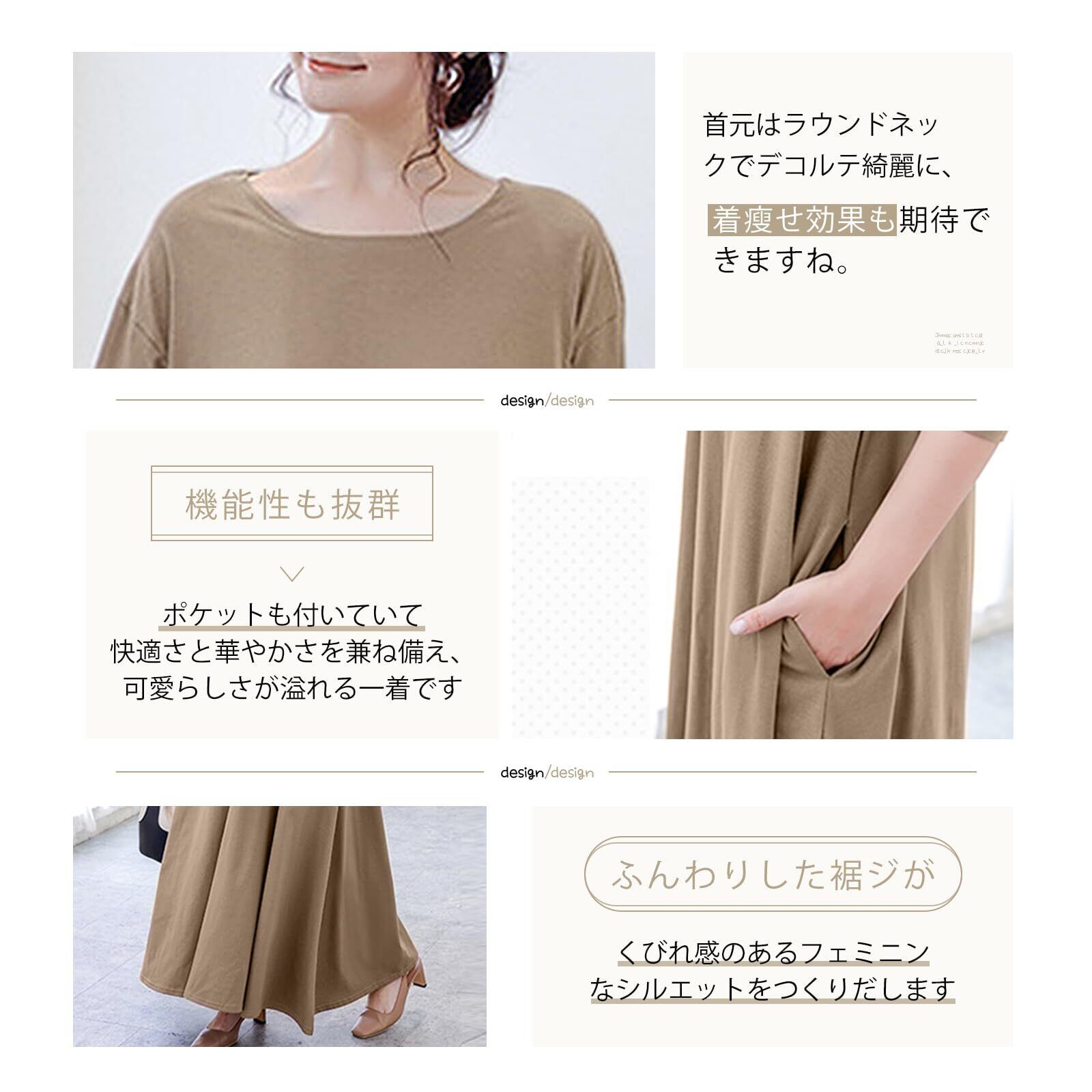 [TeMibery Lyric] ワンピース レディース ドレス ロング 着痩せ 長袖 ロングワンピース カジュアル aライン 可愛い きれいめ 大きいサイズ ゆったり 通勤 エレガント クルーネック マキシ丈 無地 ポケット付き 重ね着 春 秋