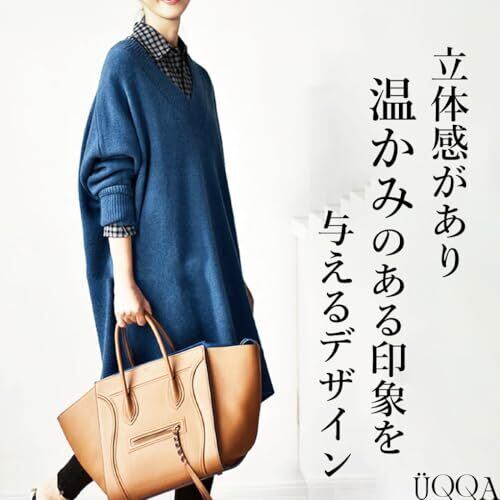 [UQQA] 【普段着からお洒落に】 ニットワンピース レディース 春 秋 Vネック ロング セーター 体型カバー