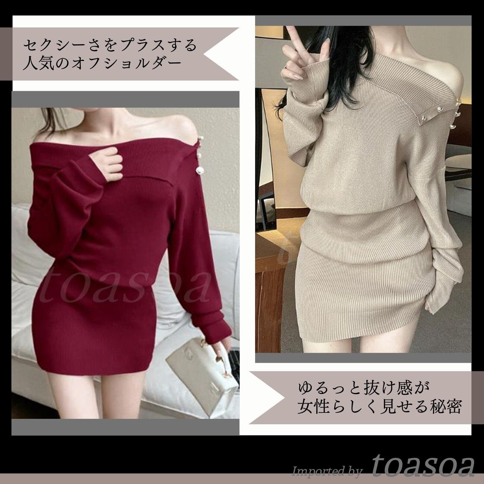 [トーアソーア] ニット ワンピース ミニ セクシー レディース タイト オフショルダー