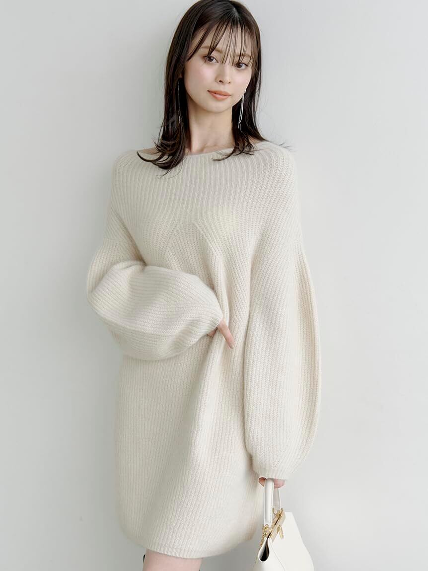 【上質なラクーン混ニットでふんわり仕上げた大人気ミニワンピース】