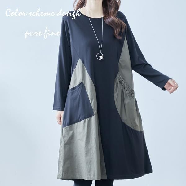 フロントのポケットがアクセントになるワンピース。 ギャザー切替を入れてふんわりとさせたシルエットが 女性らしい雰囲気を演出。 トレンド感のある配色デザイン 人気のワンピース 裾に向かってフレアー感がおしゃれなデザイン 秋冬のおしゃれスタイルに