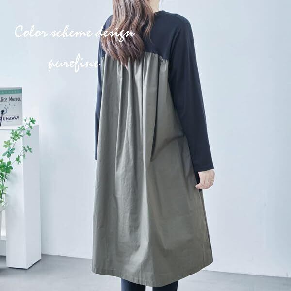 [pure&fine] ワンピース シャツ 異素材 切替 ギャザードッキング ゆったり 大人 きれいめ 秋冬 40代 50代 s3508