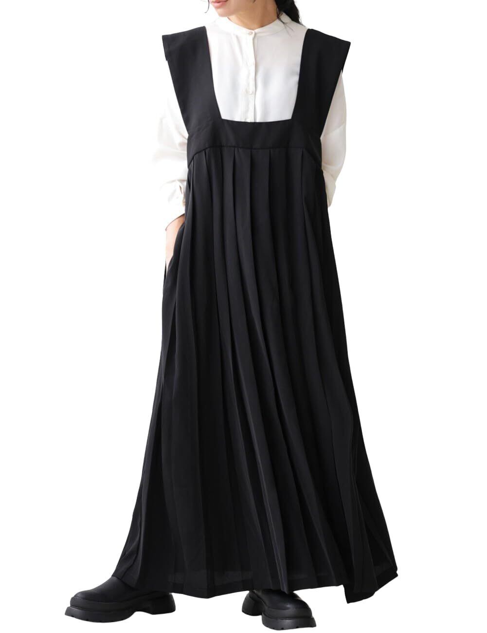 ≪DETAIL≫・美シルエットつくる胸元からのプリーツ。・すっきりみえるスクエアのネック。・身長やスタイルに合わせて調節可能な肩紐。・レイヤードもしやすいゆるっとサイズ。