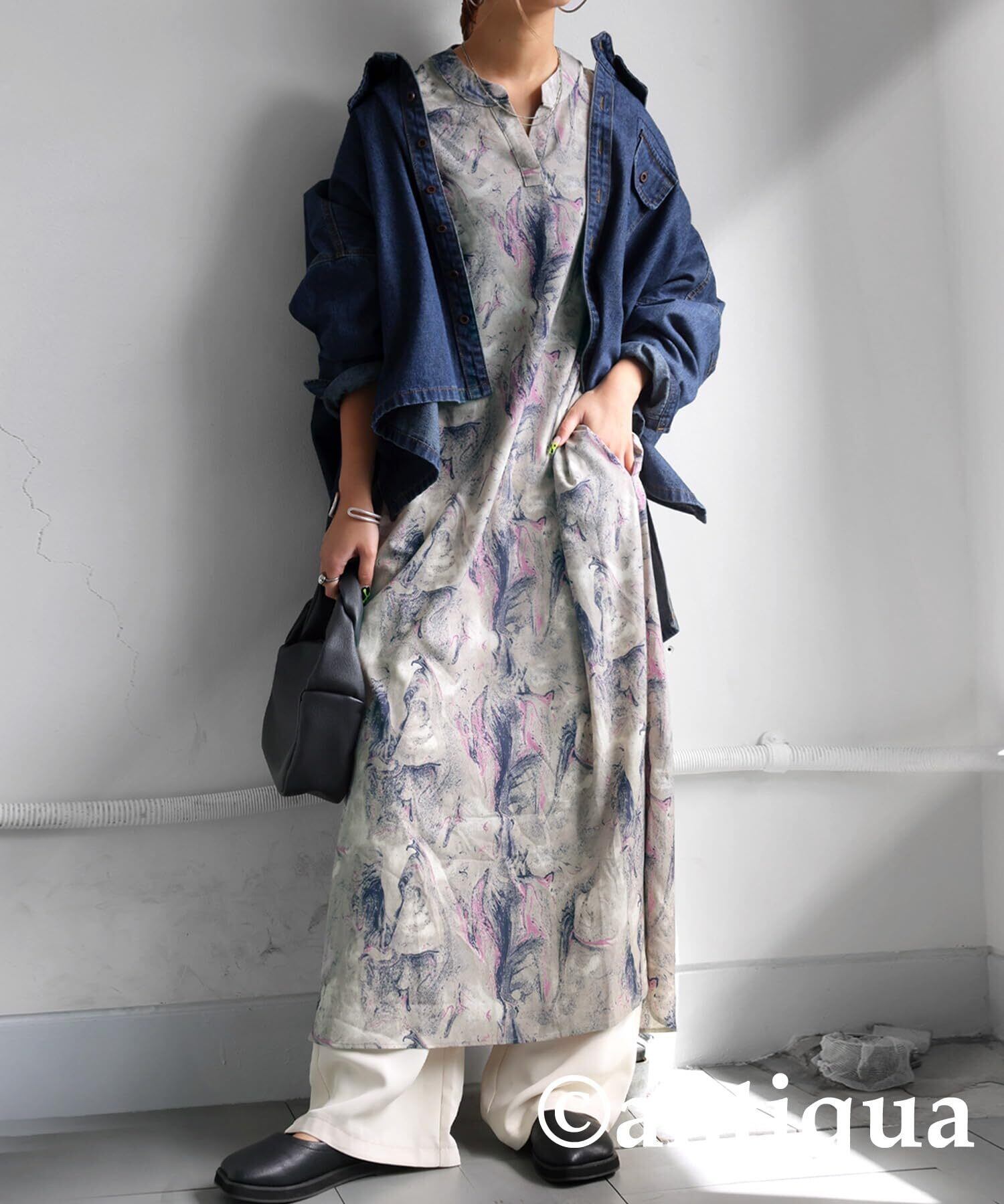 [antiqua] [アンティカ] ワンピース レディース ロング 長袖 マーブル柄 PY-00763