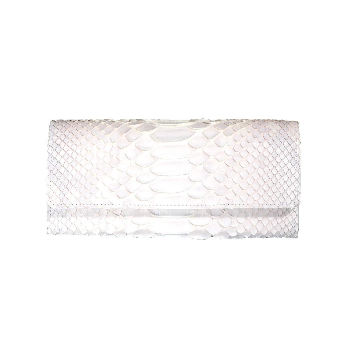 ホワイトカラーのヘビ革フラップウォレットが登場しました。
