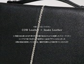 上質な牛革とスネークレザーをあしらったダブルファスナーのウォレットバッグ