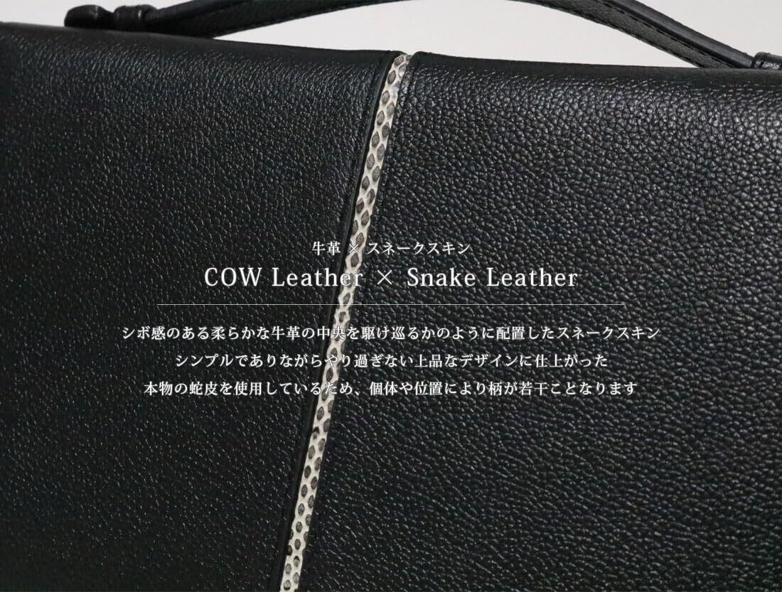 【サイズ】:約 H15cm×W23cm×D4.5cm 【素材】:牛革×蛇皮、一部合成皮革