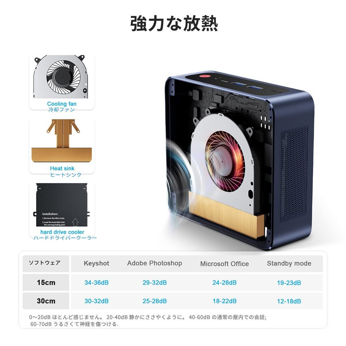 ⌈熱放散と低ノイズ⌉、Beelinkヒートパイプ+アップグレードアルミニウムプレート+強力なスマートファン、優れた熱放散と低ノイズを維持し、より快適に作業