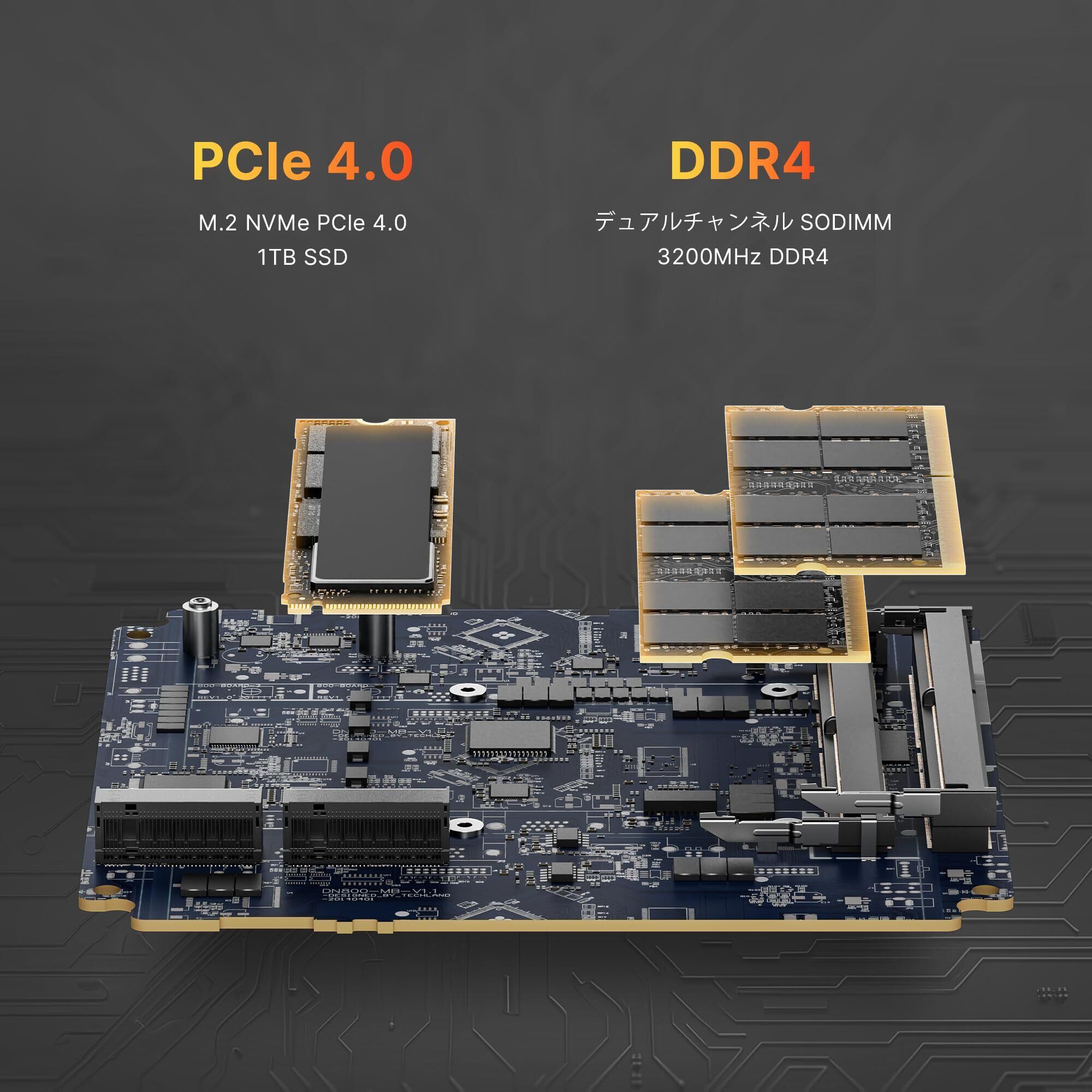 【デュアルDDR4 & デュアルSSDスロット】BOSGAME P4ミニPCは32GBメモリを搭載し、最大64GBまで拡張可能。1TB M.2 2280 PCIe4.0*4 SSDを内蔵し、最大4TBまで増設可能。さらに、追加の4TB M.2 NVMe SSDにも対応。32GB RAMによりRadeonグラフィックスの性能を最大限に引き出し、ゲームやデザイン作業をスムーズに処理します。