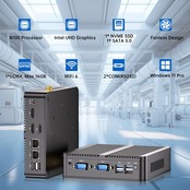 【在庫セール】Mavsloly ファンレス産業用 PC、N100 プロセッサ (4C/4T、最大 3.4GHz)、16G RAM 256G SSD、デュアル LAN、2*HDMI、1*DP トリプル ディスプレイ、2*COM RS232、Windows 11 Pro 搭載ミニ コンピューター | BOSSO